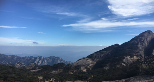 经过几个小时的攀爬我们终于登上了光明顶,它与天都峰、莲花峰成为黄山三大主峰。光明顶是观看风景的最佳之地。放眼望去,脚下黄山的千沟万壑,有的倚岸挺拔,有的独立峰巅,有的甚至是倒悬在山缝之中,让人无法不赞叹它们生命的顽强 黄山天气很晴,这次也不知道算运气好还是不好,没有看到传说中的“云海” 一路走来基本都是云雾很轻的样子 ,偶然拍到几张比较有特色云雾形状。
