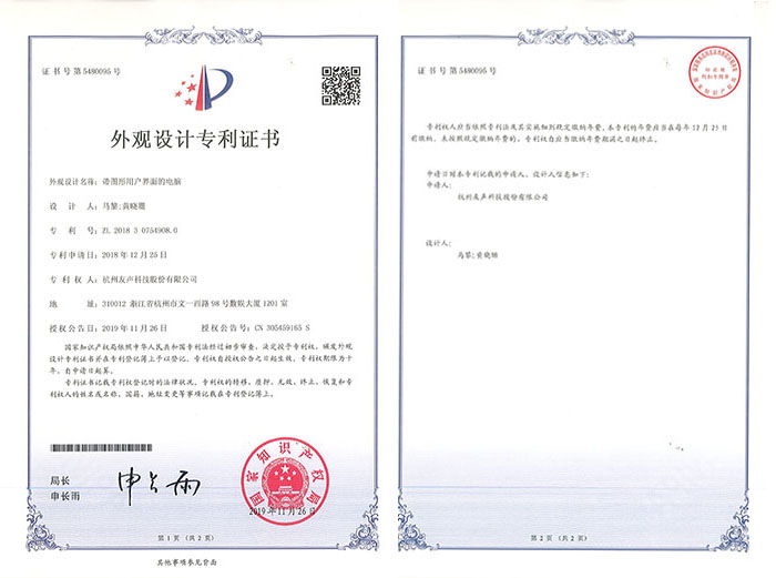 公司分别于2019年11月22日和2019年11月26日取得3项外观专利,授权名称为“带图形用户界面的手机”,登记号为:ZL201830754919.9;授权名称为“带图形用户界面的电脑”,登记号为:ZL201830754908.0;“带图形用户界面的电脑”, 登记号为:ZL201830754921.6。